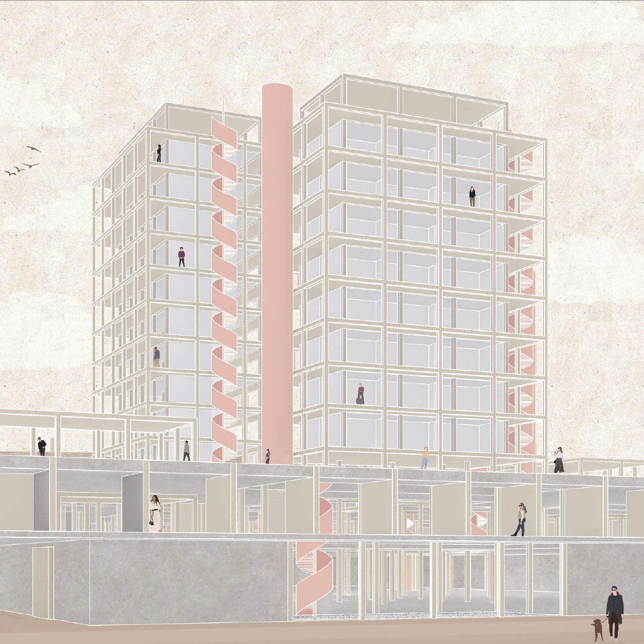 Co-Living.- This is the main program to be developed. It is about communal housing and finding possible new ways we will be inhabiting cities in our near future. Please check the following point about "some questions to reflect upon" to find inspiration and relevant topics for the brief.